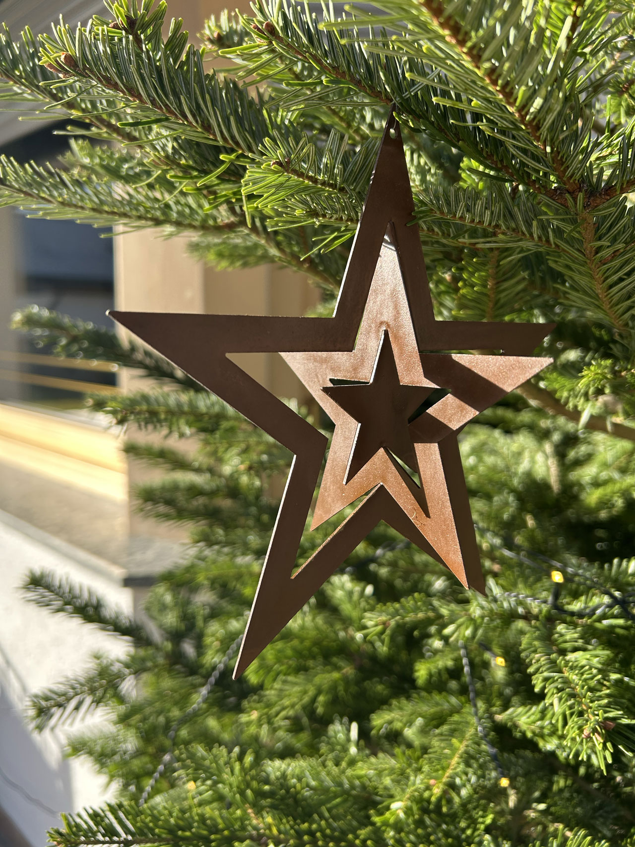 Dieser dekorative Weihnachtsstern aus Metall überzeugt mit seinem zeitlosen Design und der warmen Rostoptik. Die mehrlagige Sternform sorgt für eine besondere Tiefenwirkung und macht ihn zu einem stilvollen Blickfang am Weihnachtsbaum, an Zweigen oder als Fensterdekoration. Robust verarbeitet und vielseitig einsetzbar, bringt er natürliche Eleganz und festliche Stimmung in Ihr Zuhause – innen wie außen.
